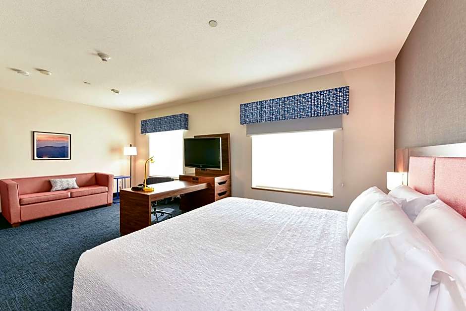 An accessible tub and a 42-inch flat-screen cable TV are available in this room.
